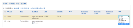 点击项目名称,可显示全部候选人名单。然后从操作下拉菜单中选择查看候选人选项。在这里,您能更改候选人的姓、名、电子邮件地址、以及寄送给候选人的电邮语言。