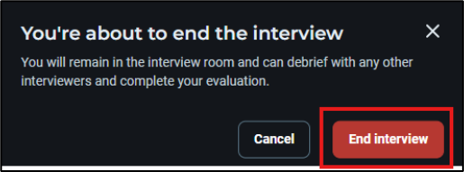 4. Click “End interview” on the pop-up that appears to end the interview. To cancel this action,