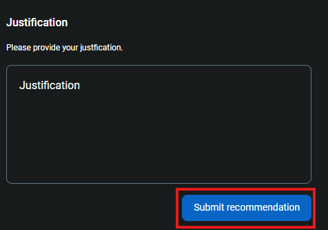 5. To update your recommendation, select your updated recommendation from the 'Make a recommendation' dropdown, and click 'Submit recommendation' to update.
