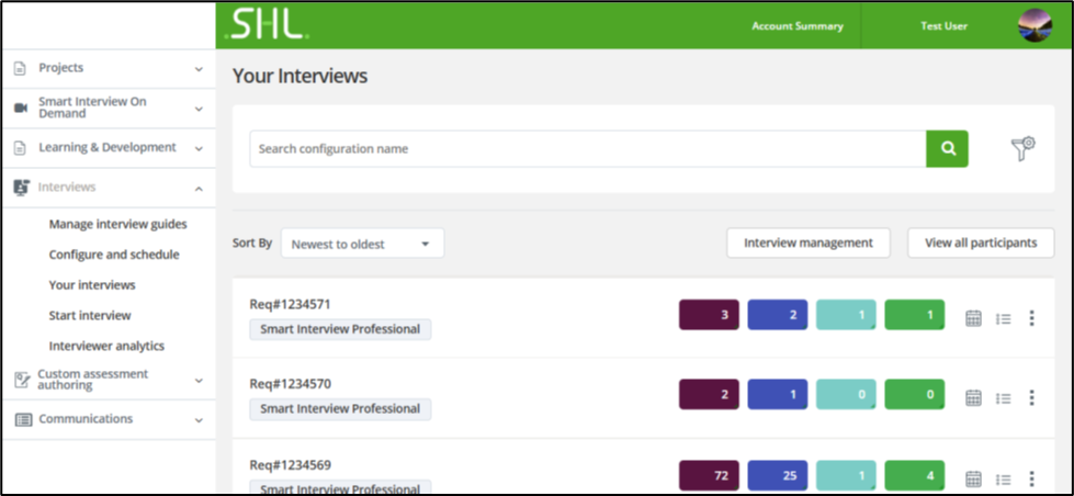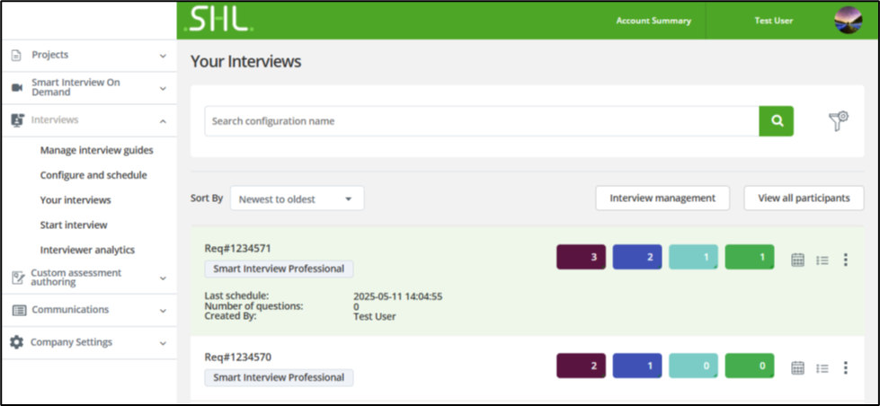 3. Scheduled interviews for the chosen role or interview guide will be displayed.