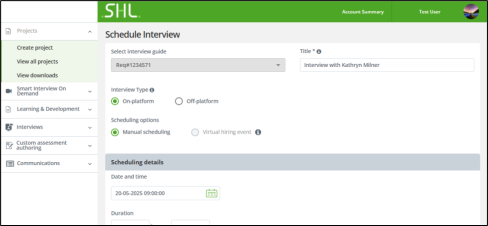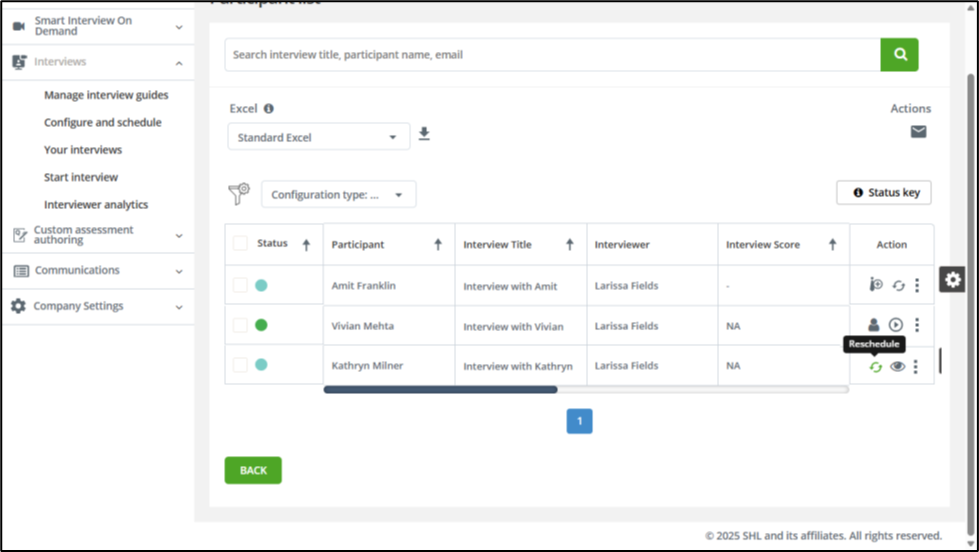 Once an interview is scheduled, the recruiter can either reschedule or cancel the interview from