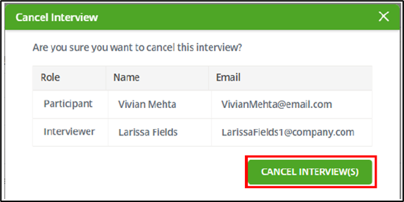 2. Confirm participant and interviewer and click 'Cancel Interview(s)' to cancel the interview.