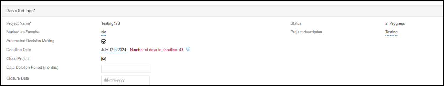 From the menu bar at the top of your screen select Create New and click on Project. The Basic Settings* area will be displayed.