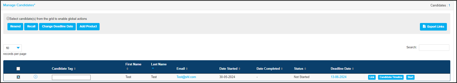 Click on Manage Candidates to view the Single Use links.