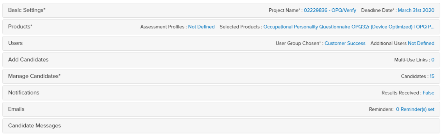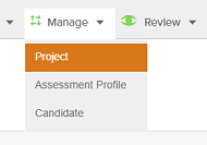 To activate an Additional assessment or report, go to the project through the Manage > Projects menu option, open the project, and expand the Manage Candidates section.