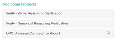 In the screenshot below, the OPQ Universal Competency Report has been added as an additional item, as well as the verification tests for the Verify tests on the project.