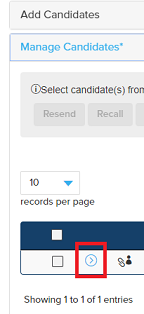 Then locate the candidate for whom you want to activate the additional content and click on the blue arrow in a circle to the left of their name.